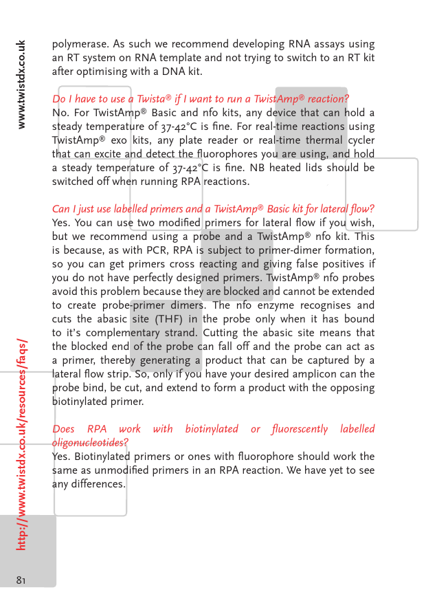 RPA The isothermal DNA/RNA amplification that really works !!! TwistDx_Product Information 2017